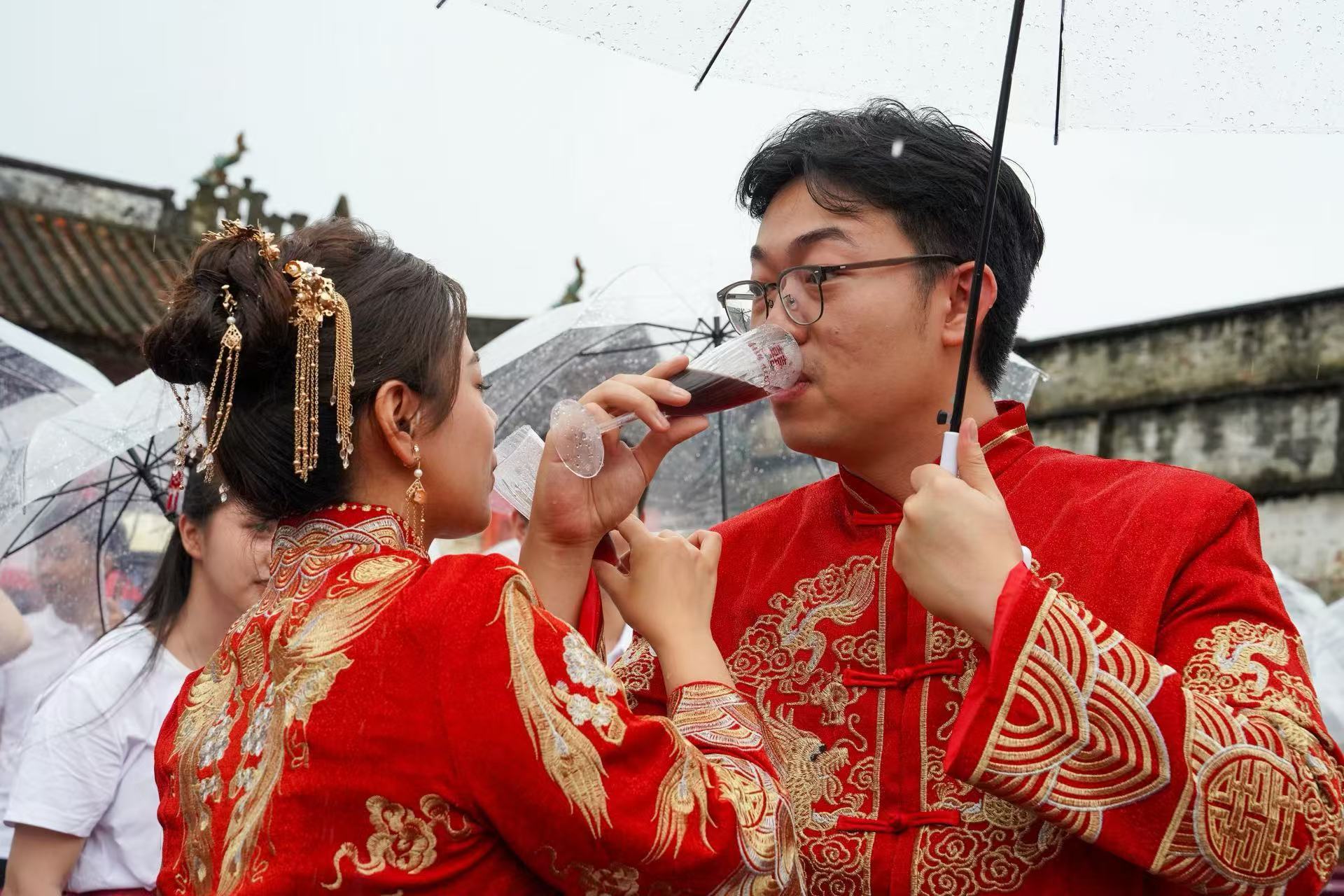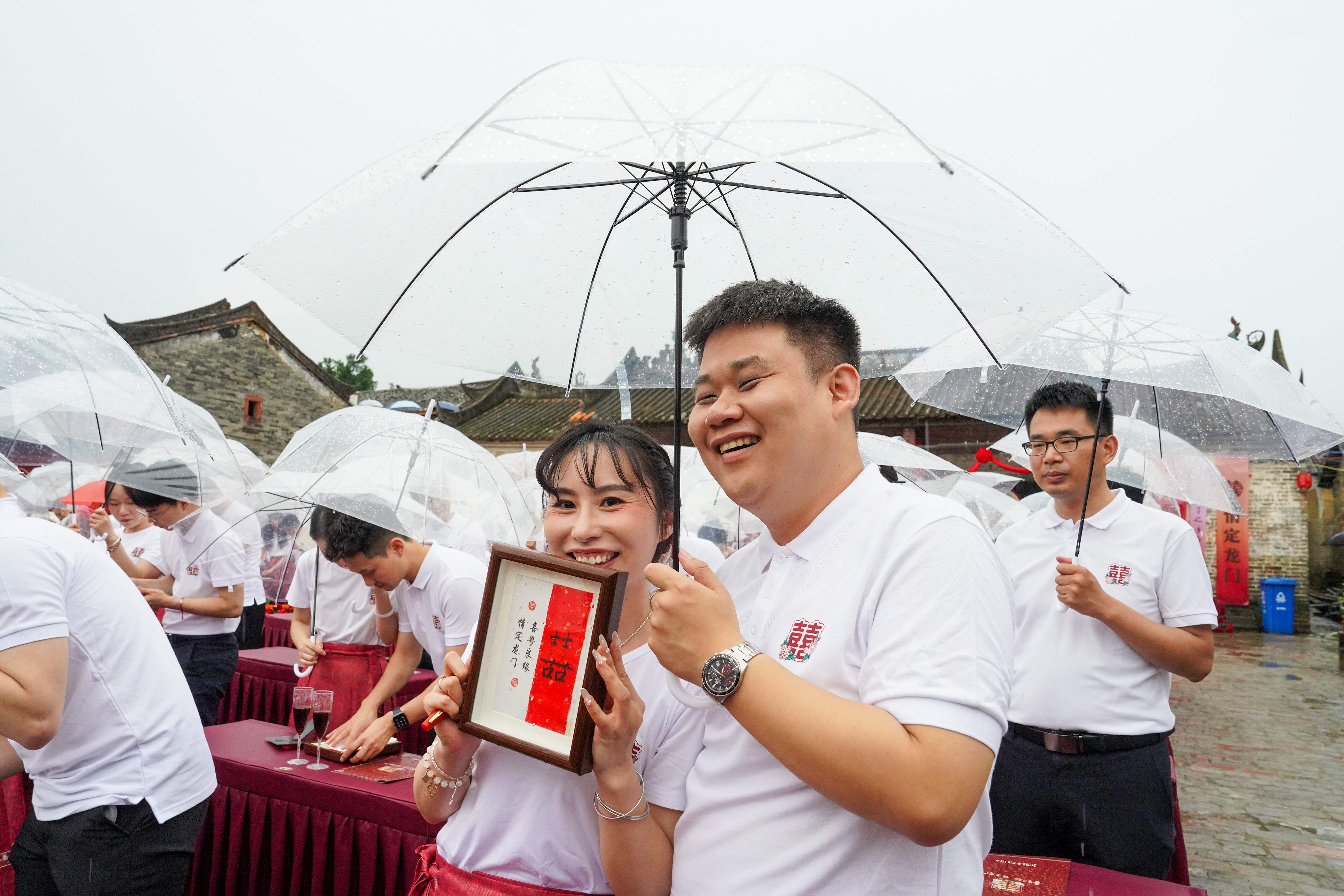 5月18日,广东今年首场青年集体婚礼在惠州市龙门县龙华镇长滩村拉开序幕。在拥有300多年历史的龙门围屋廖公祠前,新人们身着特色古风婚服,体验客家婚嫁风俗和传统非遗工艺,品味当地特色宴席,携手许下动人的白首之约。